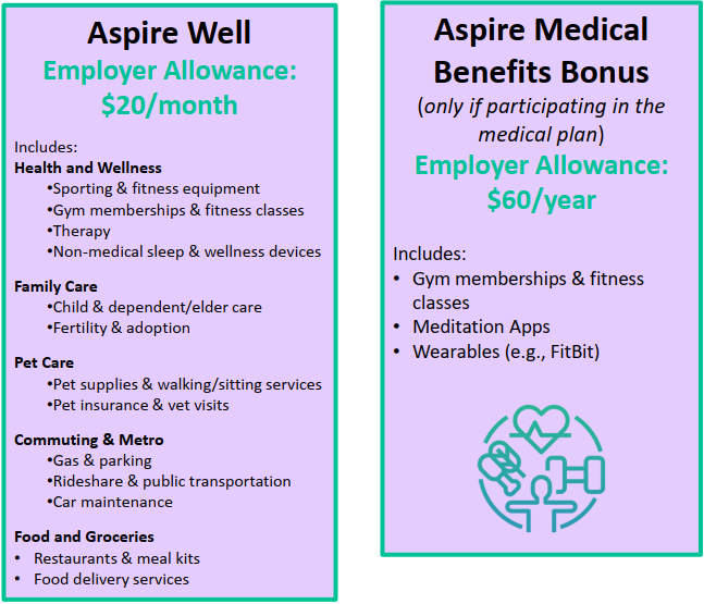 Aspire offers two wellness benefit programs through JOON: Aspire Well & Aspire Medical Benefits Bonus.